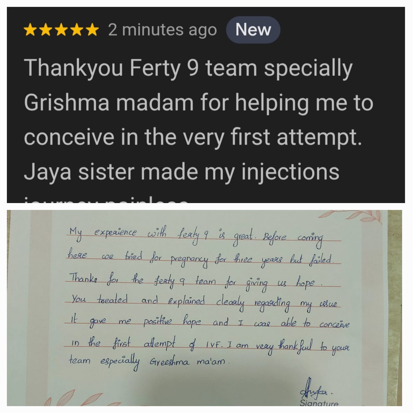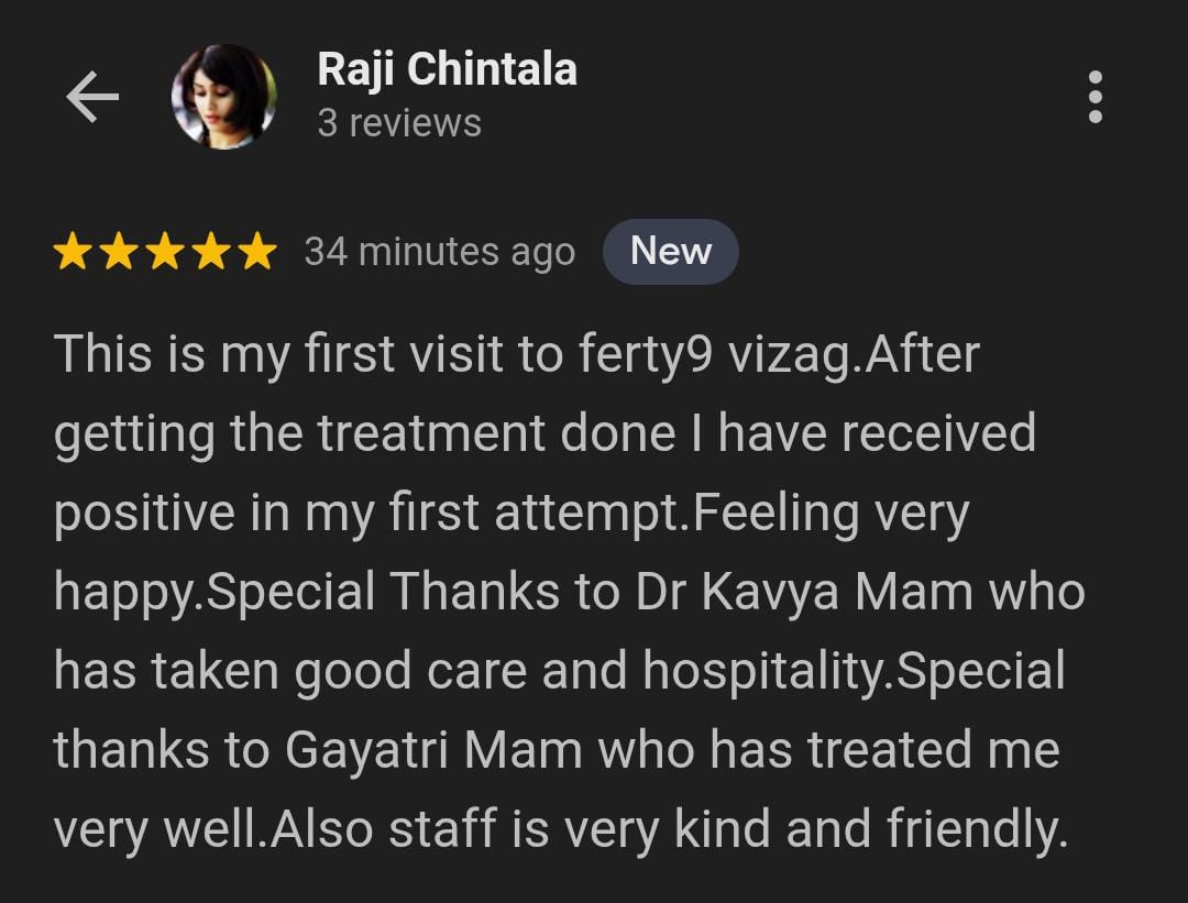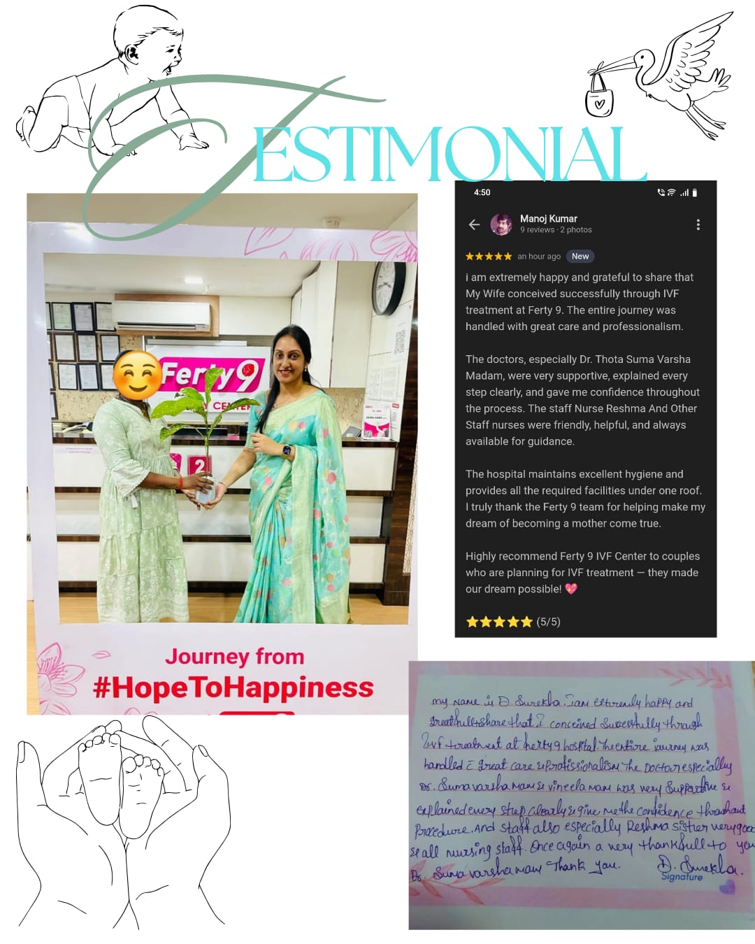 I am very happy today, because of Ferty 9 & Dr. Suma Varsha madam. She explained our problem clearly. I liked personal care from the staff. Thank you Dr. Suma Varsha madam and staff members. B. Sandhya